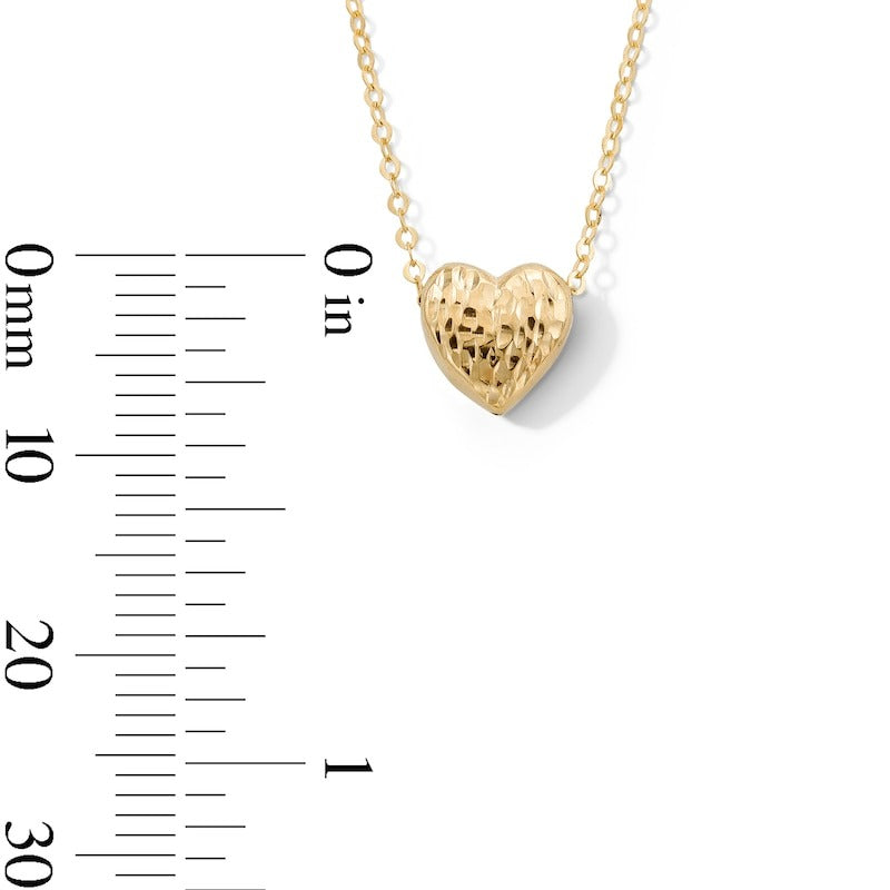 10K Gold Diamond-Cut Textured Heart Pendant - 18"
