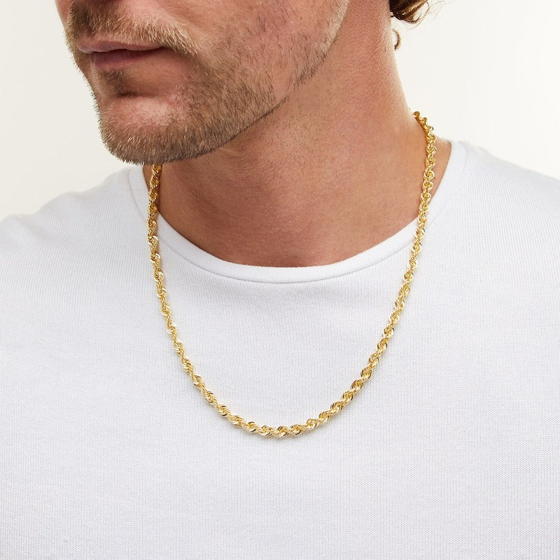 10K Hollow Gold Bonded Diamond-Cut Rope Chain - 22"