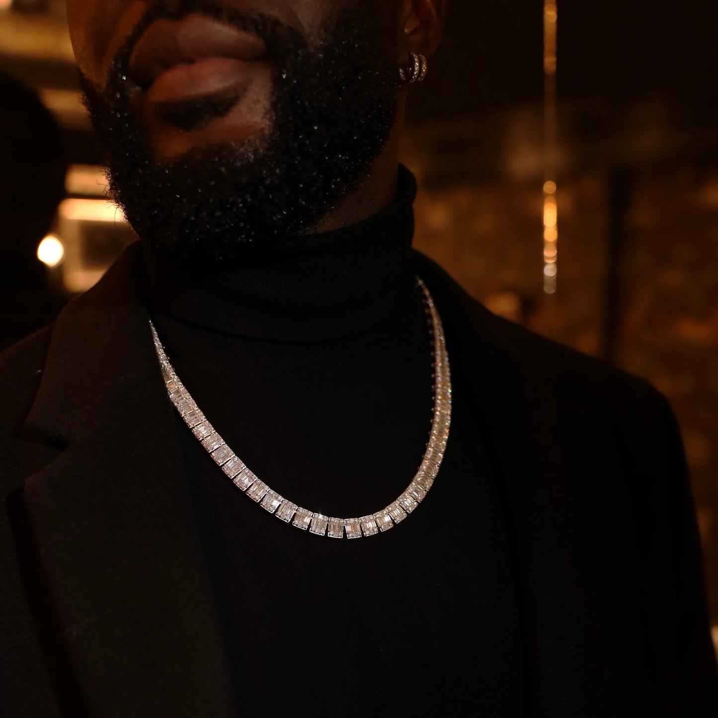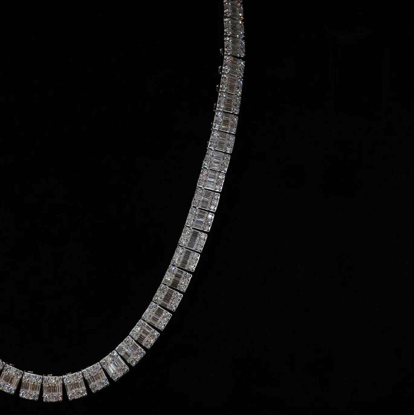 10mm Baguette Tennis Necklace (Silver)