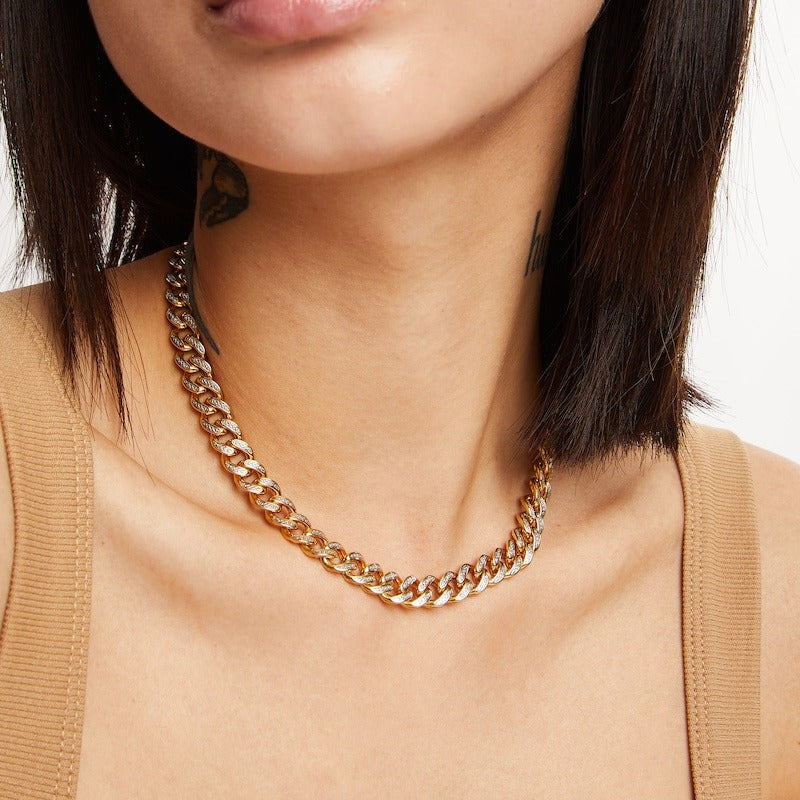14K Gold Plated 1/20 CT. T.W. Diamond Chunky Link Chain Choker