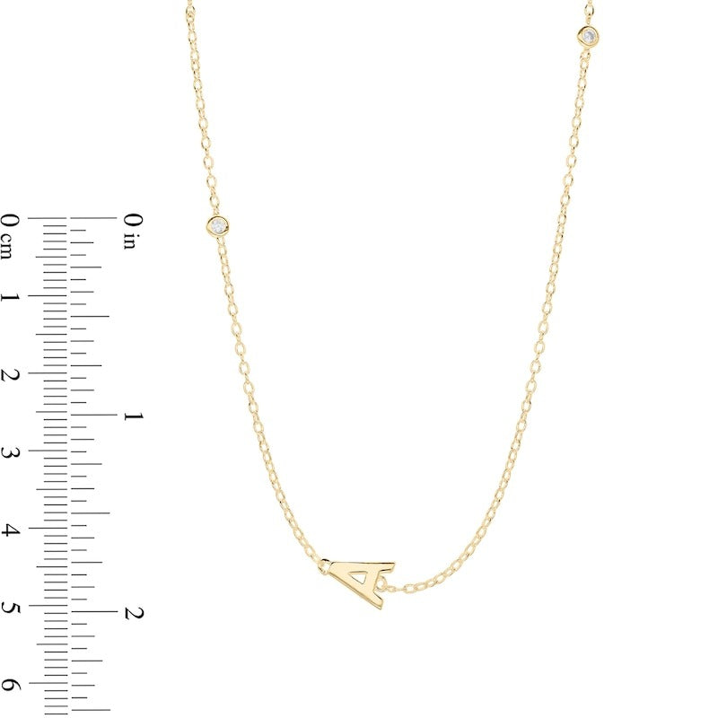 14K Gold Plated CZ Bezel Set Initial Rolo Necklace - 18"