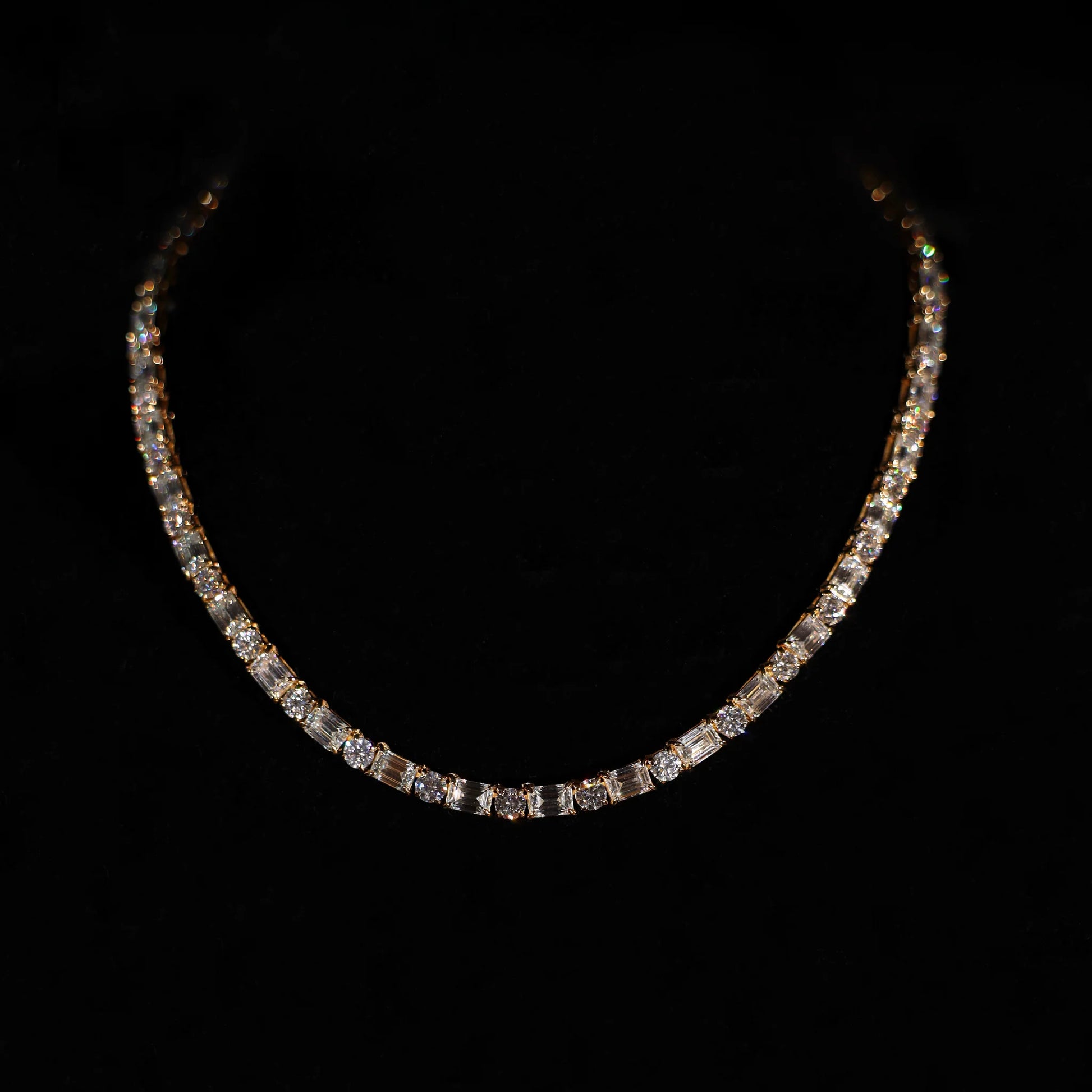 5mm Round & Emerald Cut Tennis Necklace (Gold)