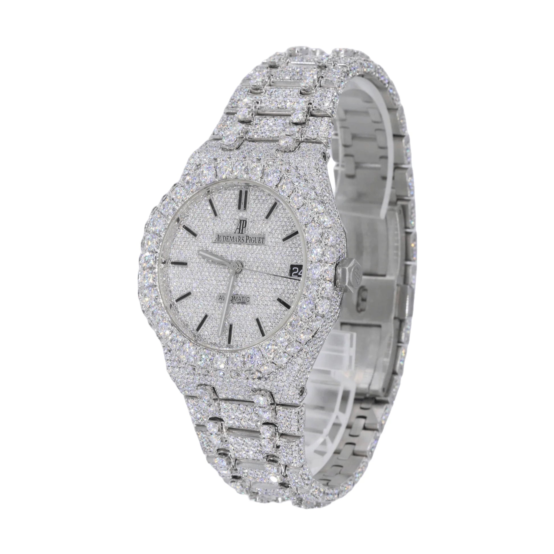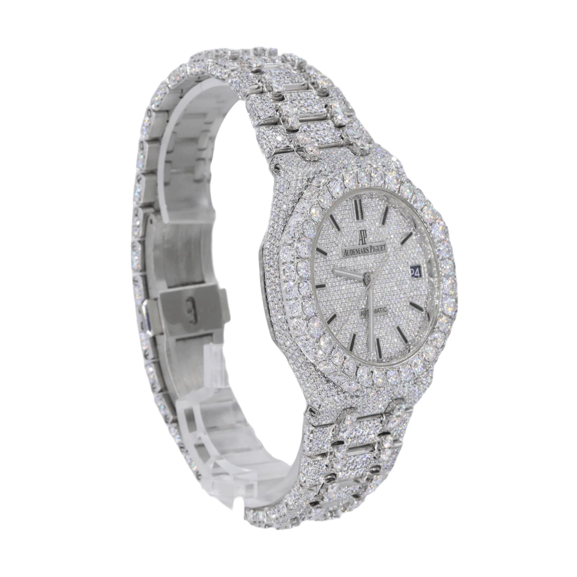 AP Stainless Steel 41MM Moissanite Diamond Watch 25CT Studded Band