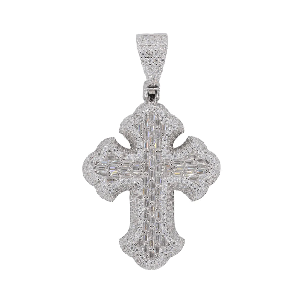 Baguette Gothic Cross VVS Moissanite Diamond Pendant