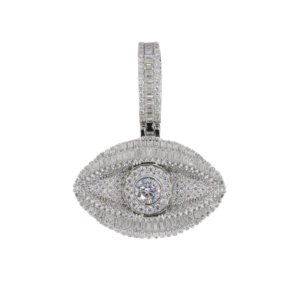 Baguette Iced Out Evil Eye VVS Moissanite Diamond Pendant