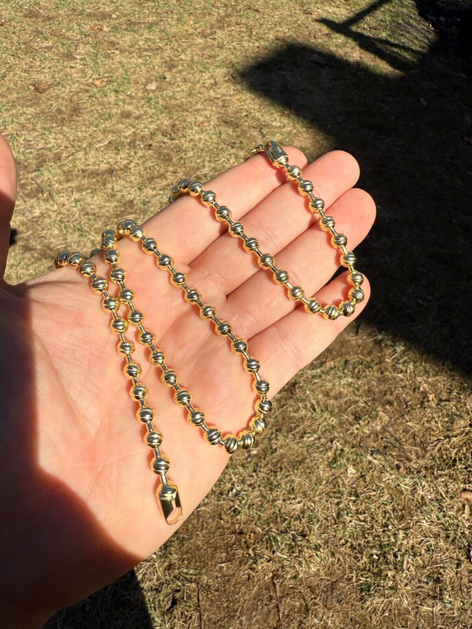 Ball Bead "Dog Tag" Chain Necklace - 14k Gold Vermeil 925 Sterling Silver - 18"-30" - 6mm