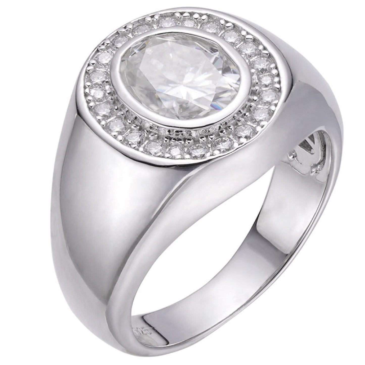 Big 2.4ct Oval Cut MOISSANITE Solitaire Men's Real Solid 925 Silver Ring Pink