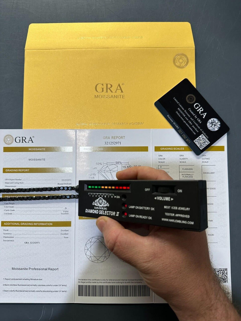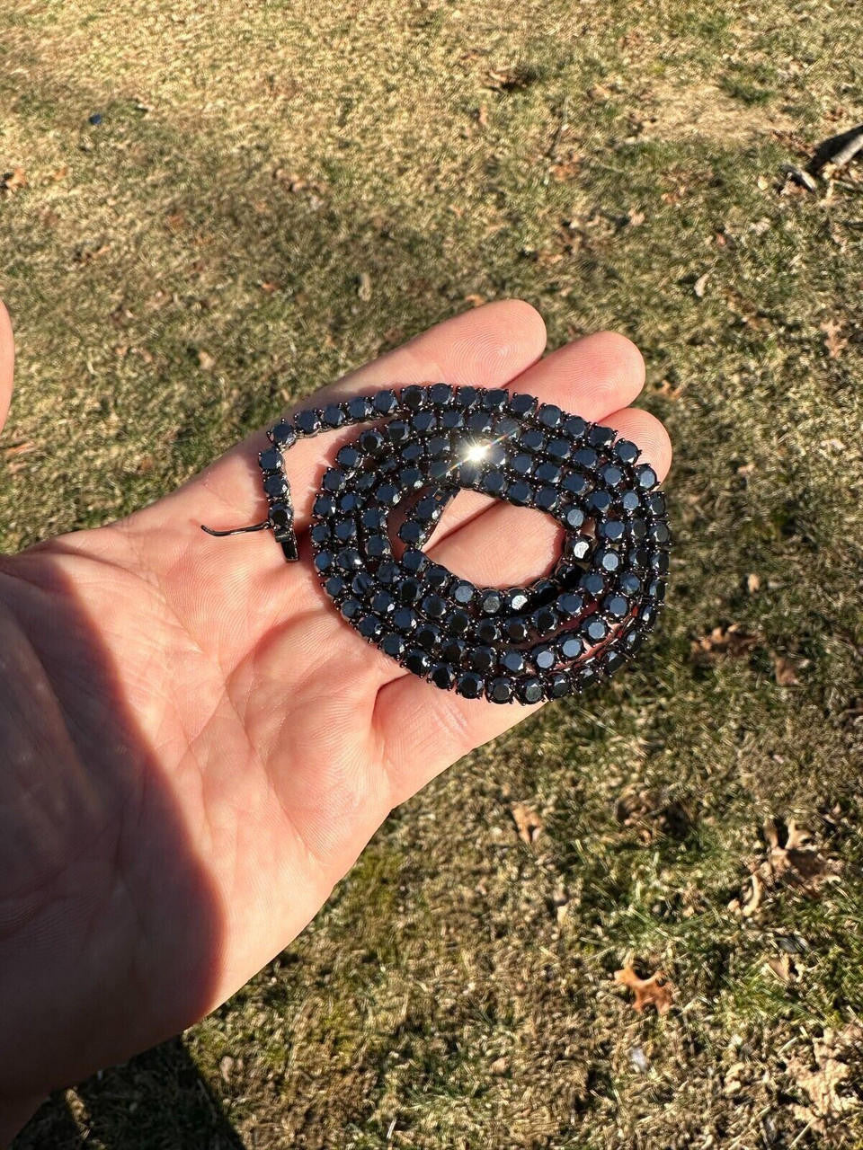 Black MOISSANITE Tennis Chain Necklace Iced Out - Black Rhodium Over 925 Silver - 5mm - 16"-28"