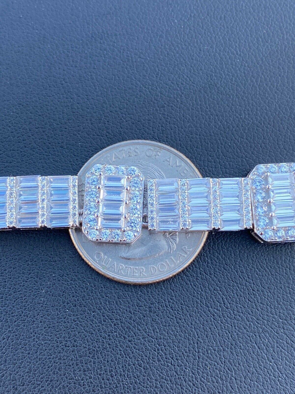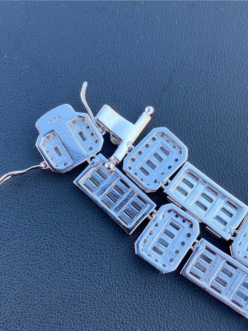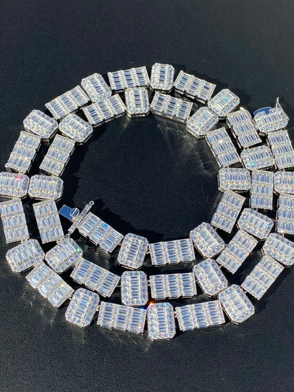 Custom Baguette Tennis Chain Necklace Iced Out CZ Stones - 925 Silver - 12mm - 18"-28"