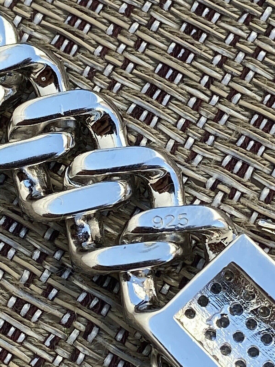 Figarucci Prong Cuban Link Chain Necklace Iced Out CZ Stones - 925 Silver - 15mm - 18"-30"