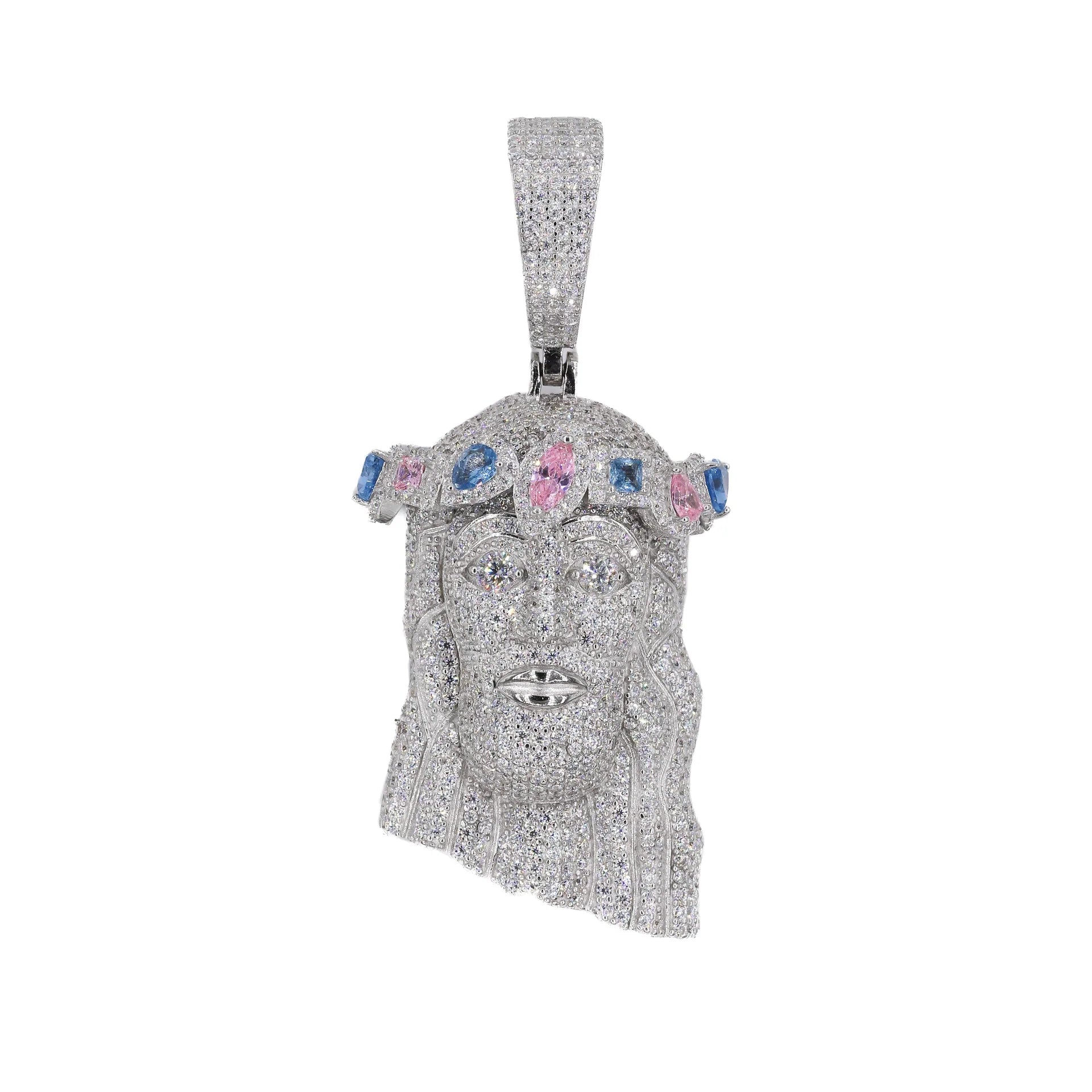 Iced Jesus With Colored Stones VVS Moissanite Diamonds Pendant