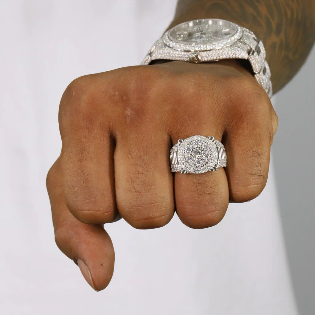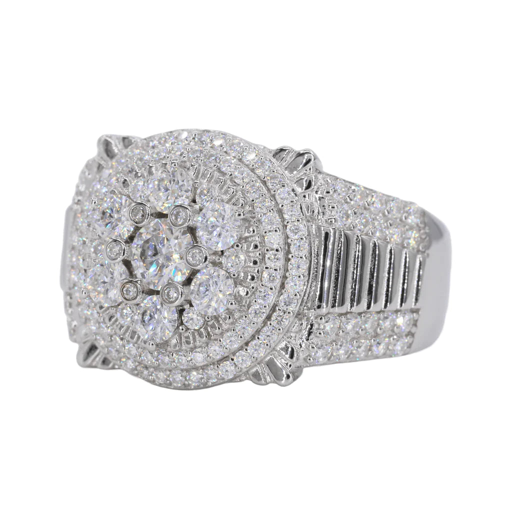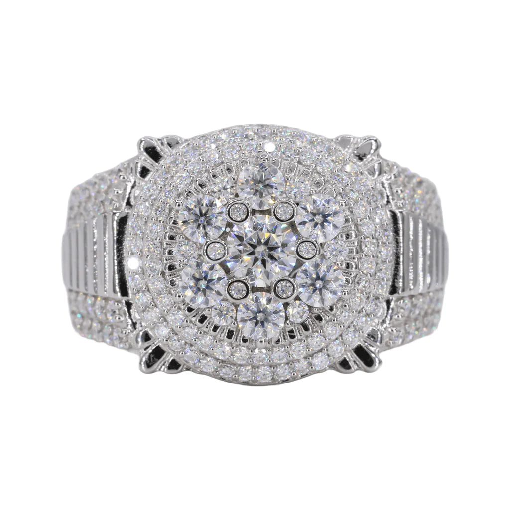 Iced Out Big Stone Flower VVS Moissanite Diamond Ring