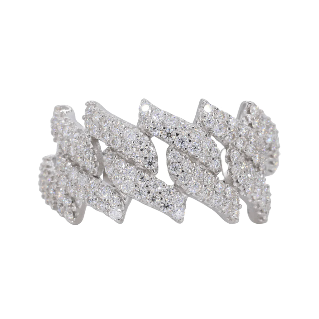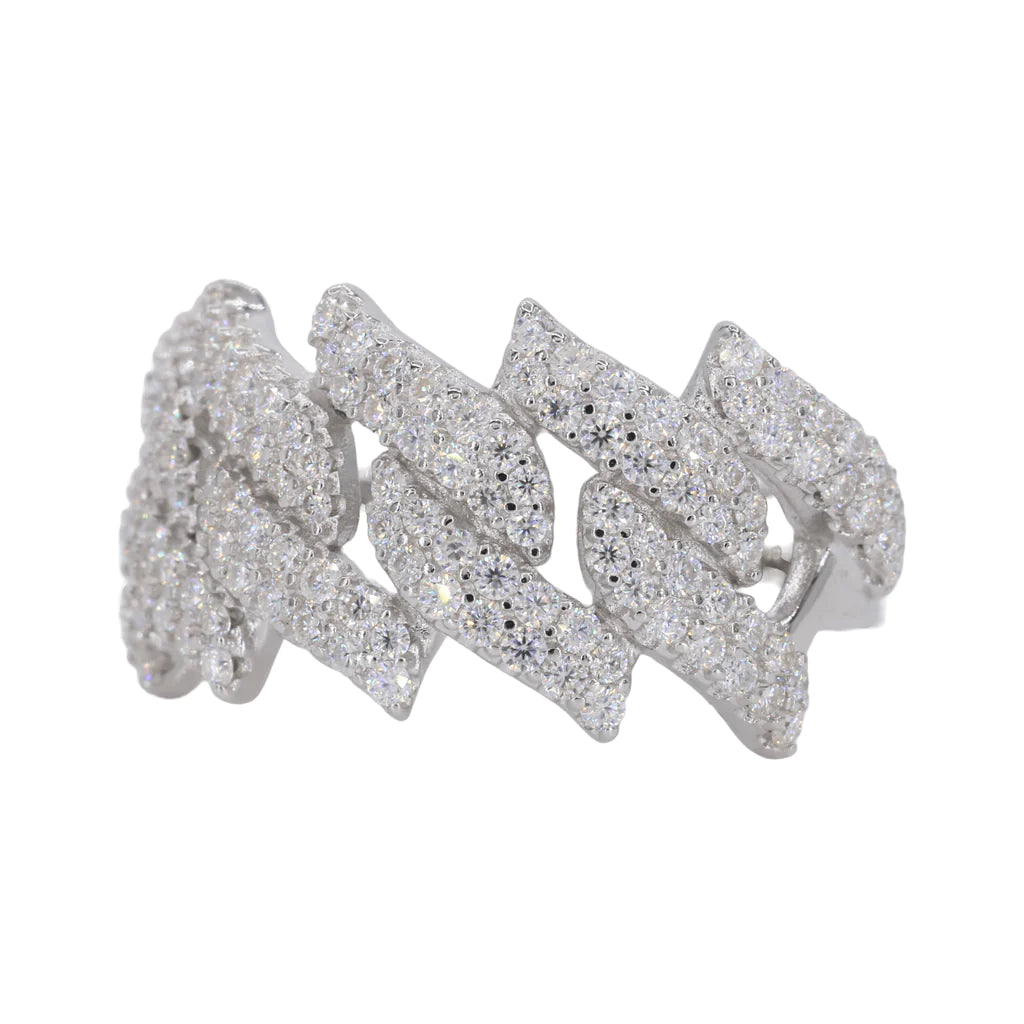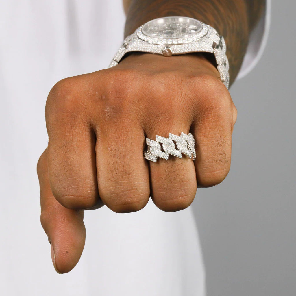 Iced Out Spiked Cuban Band VVS Moissanite Diamond Ring
