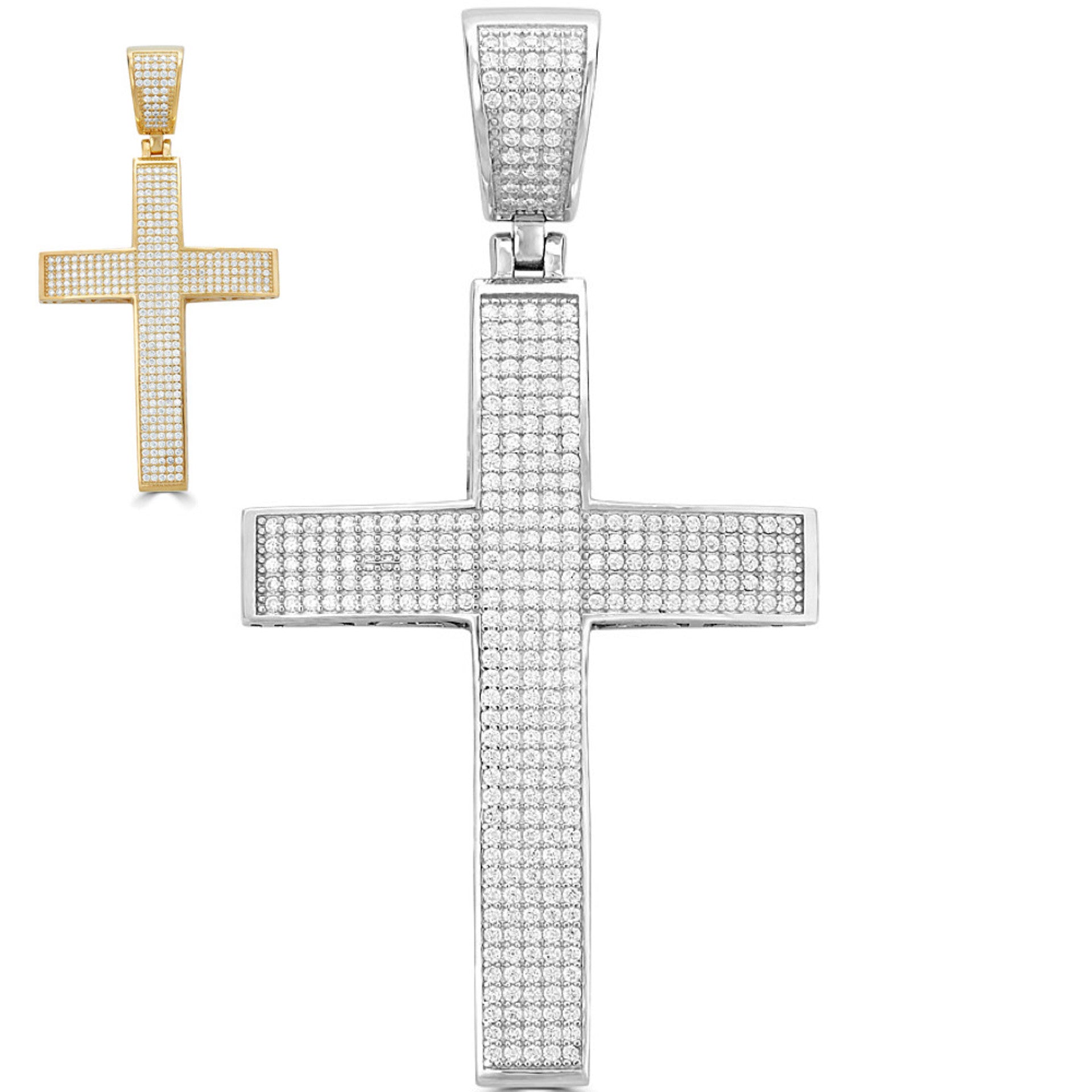 Mens Solid 925 Silver Cross Pendant Real ICED 3ct Diamond 14k Gold W. Rope Chain