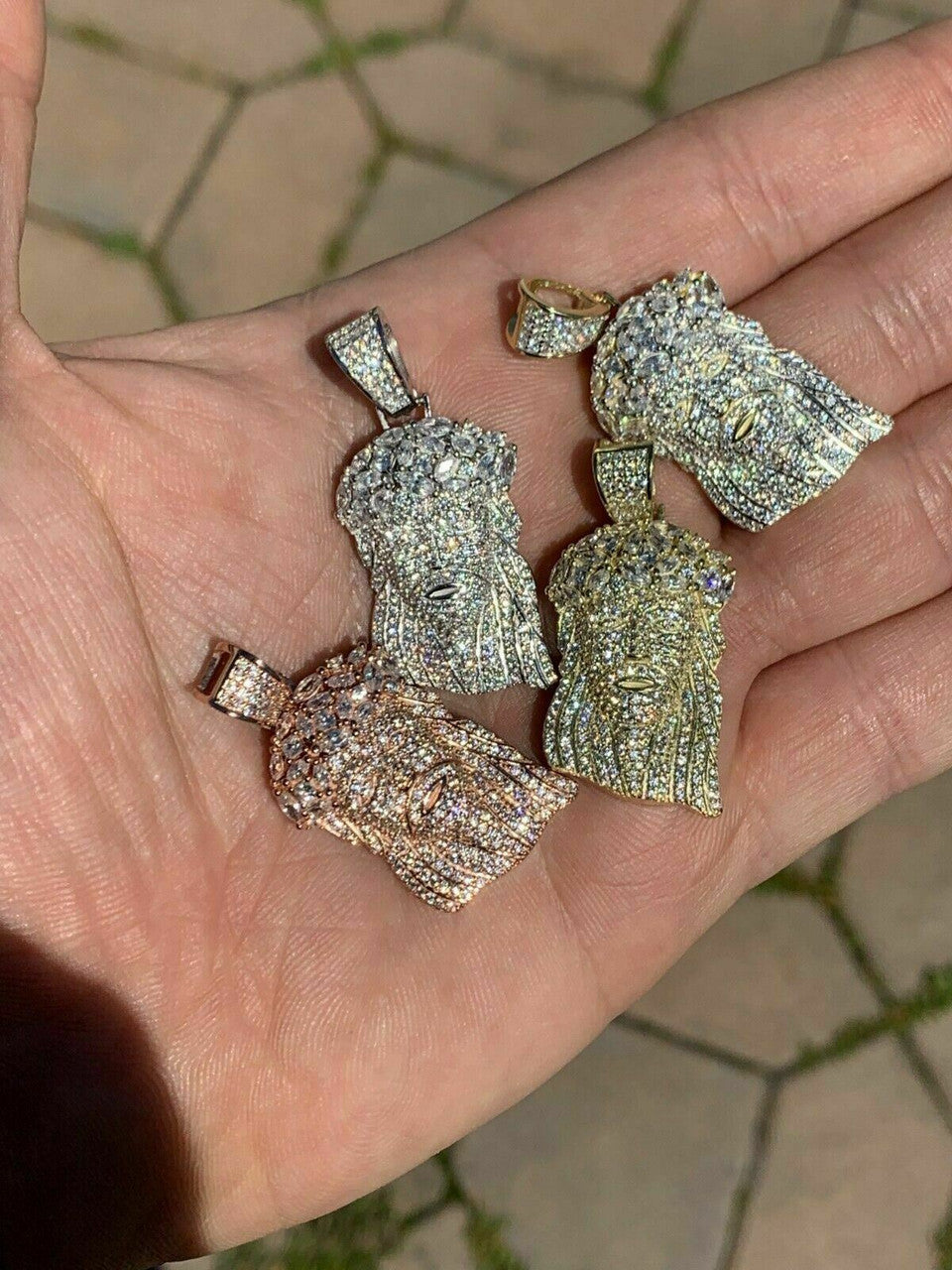 Mens Solid 925 Sterling Silver Jesus Piece Real Iced Bust Down Yellow Rose Gold