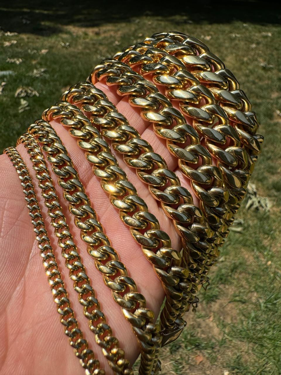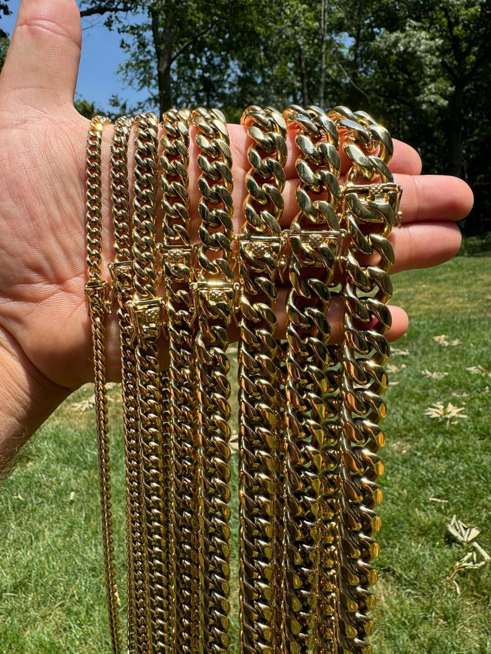 Miami Cuban Link Chain Necklace - 14k Yellow Gold Plated Stainless Steel - 16"-36" - 4mm-18mm