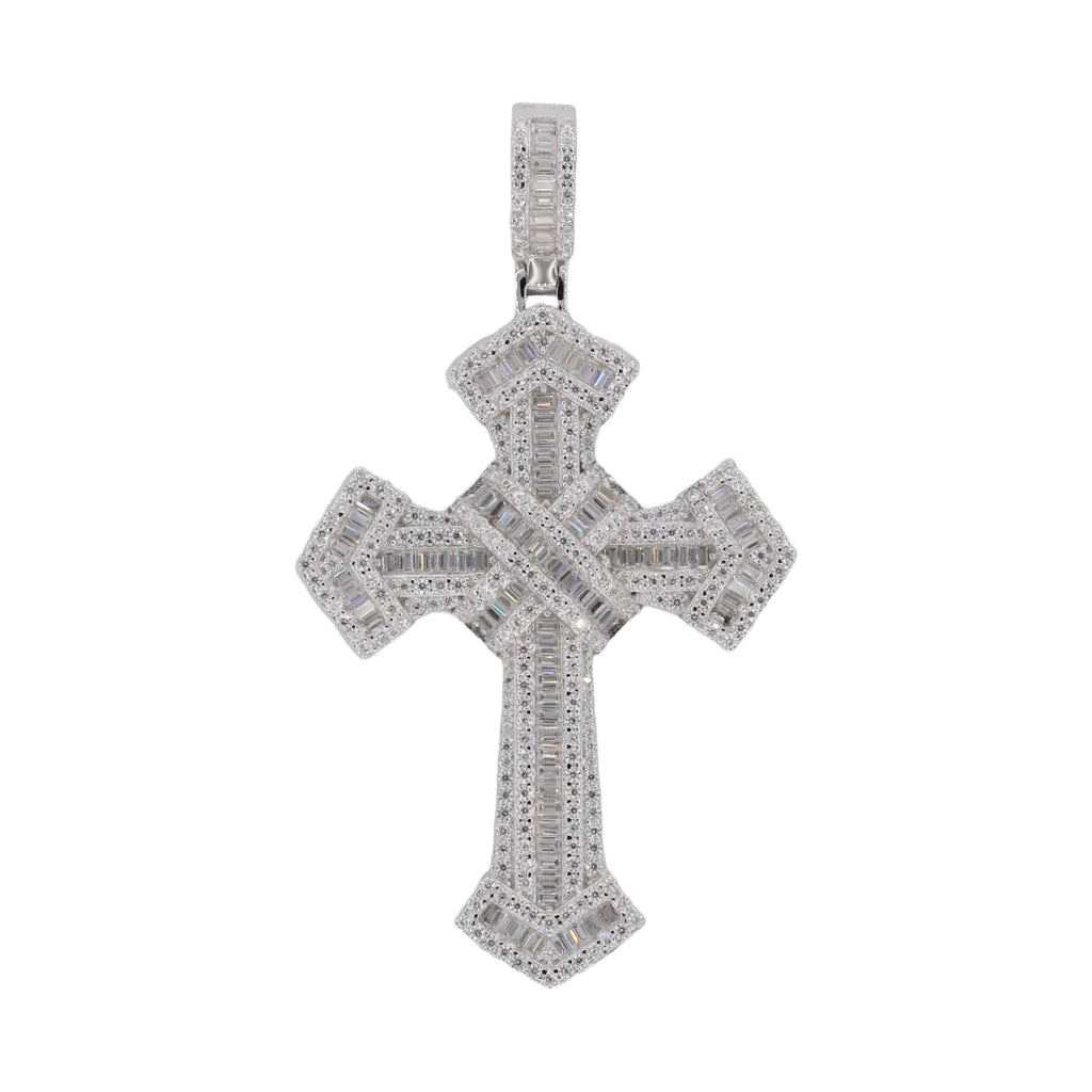 Middle Age Iced Out Baguette Cross VVS Moissanite Diamond Pendant