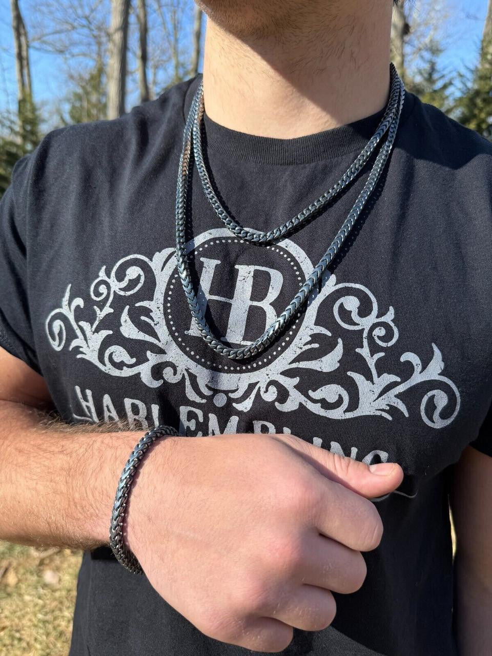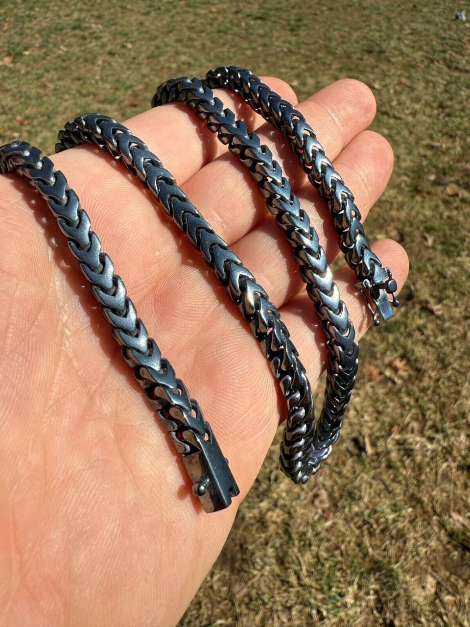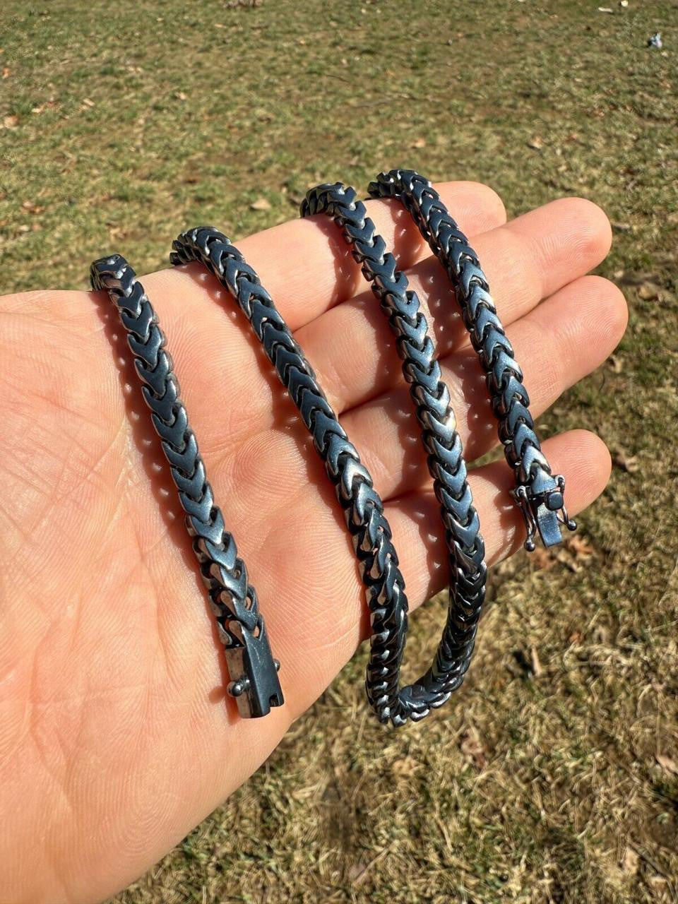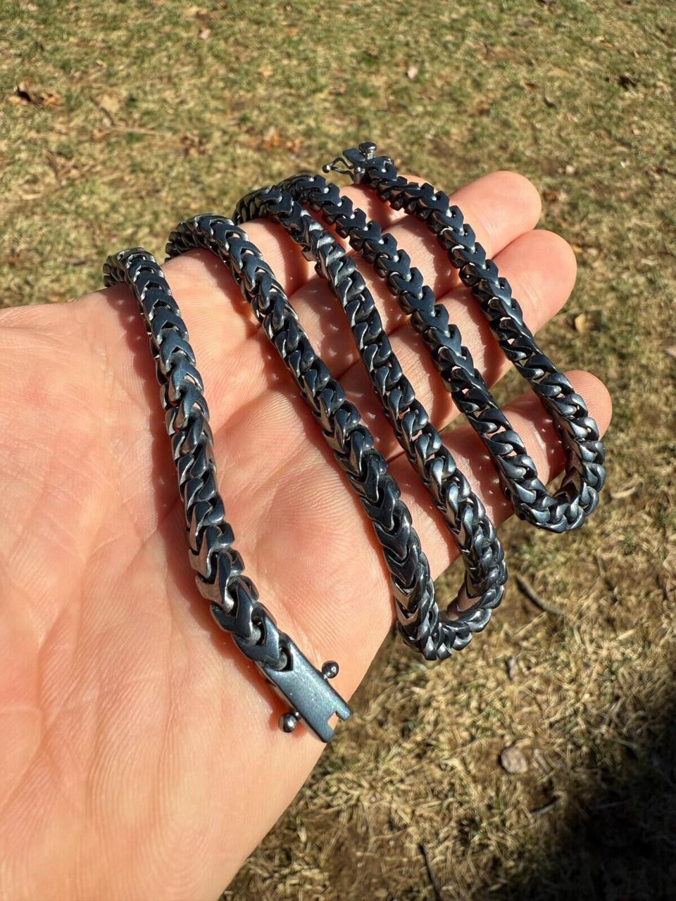 Modern Black Franco Link Chain Necklace W. Box Lock - Black Rhodium Over 925 Sterling Silver - 18"-30" - 6mm