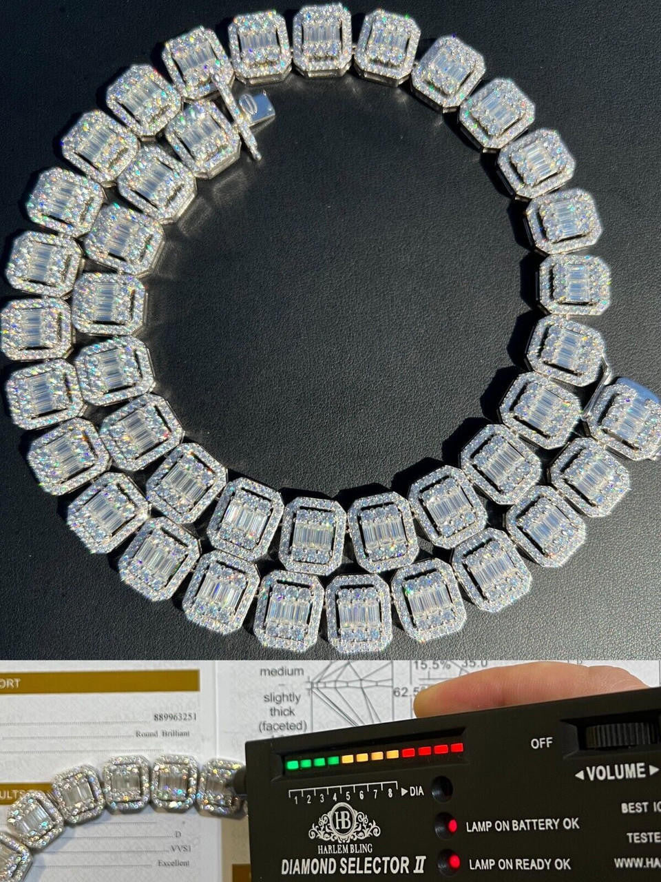 MOISSANITE Baguette Custom Rapper Chain Necklace Iced Out - 925 Silver - 16mm - 18-28"