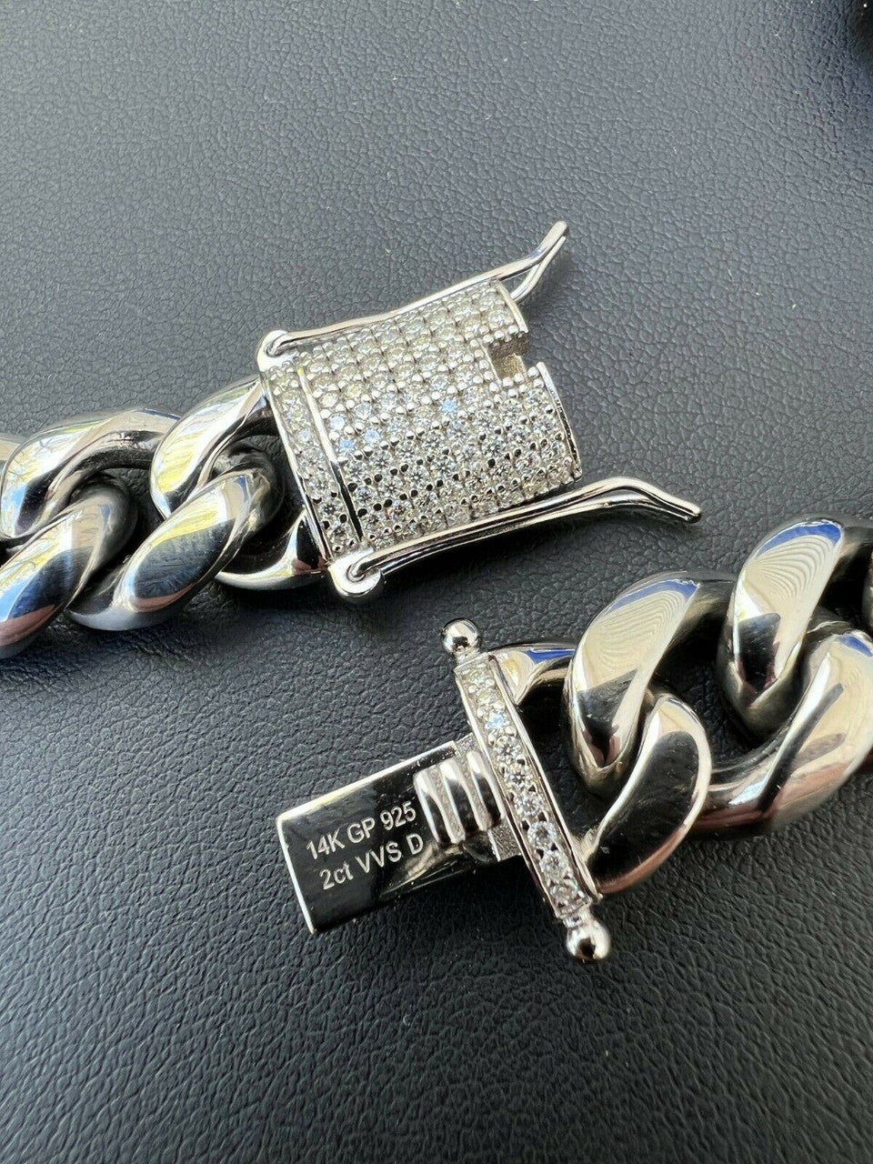 MOISSANITE CLASP Miami Cuban Link Chain Necklace - Stainless Steel W. 925 Silver Clasp - 16"-30" - 8mm-14mm