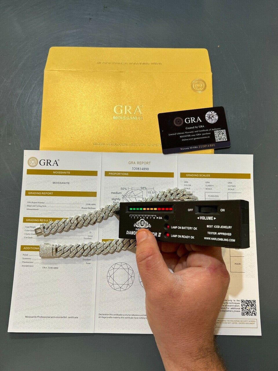 MOISSANITE Classic Prong Cuban Necklace Chain - 925 Silver - 14mm - 16"-30"