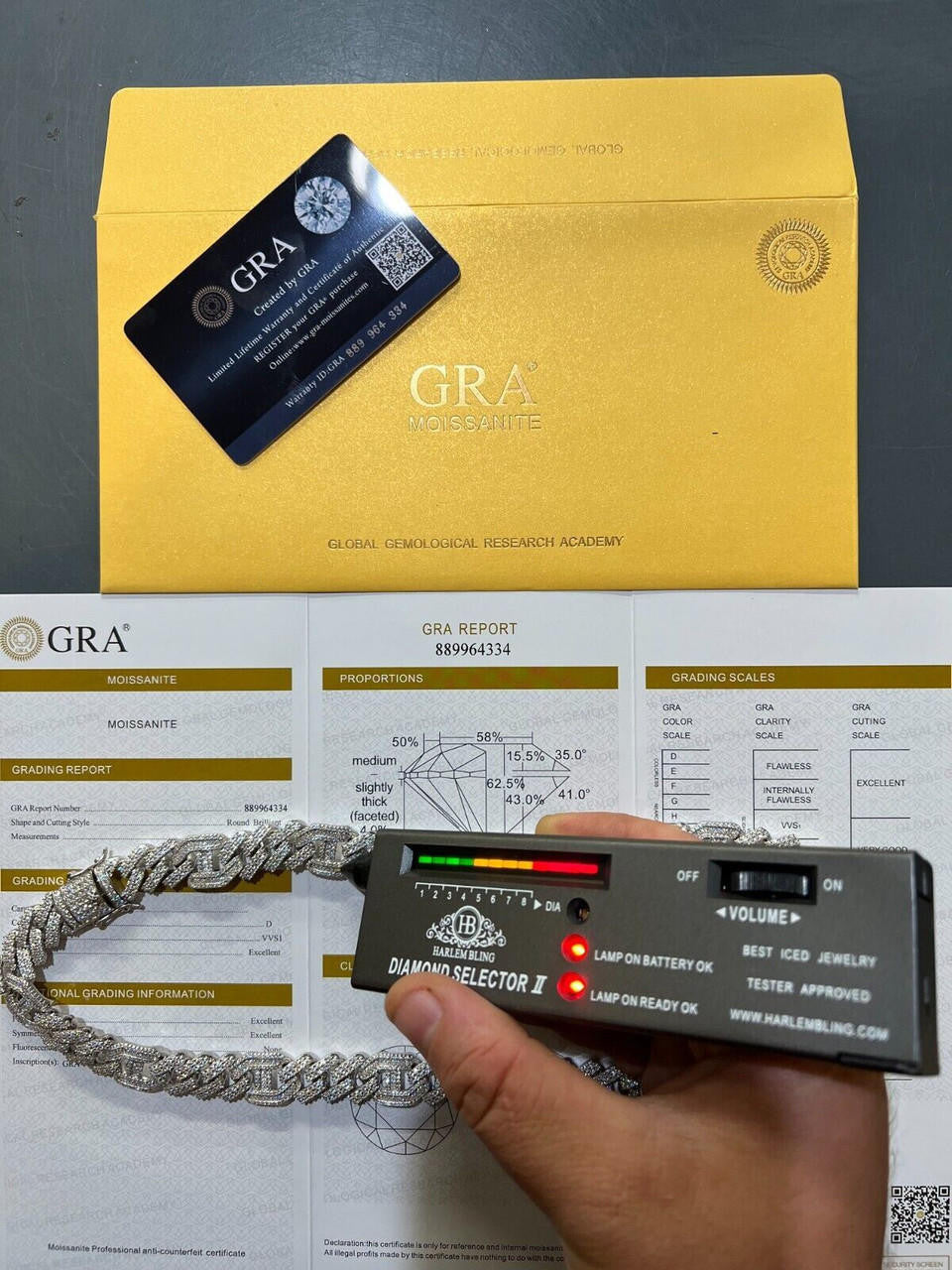 MOISSANITE Figarucci Prong Cuban Link Chain Necklace Iced Out - 925 Silver - 15mm - 18"-30"