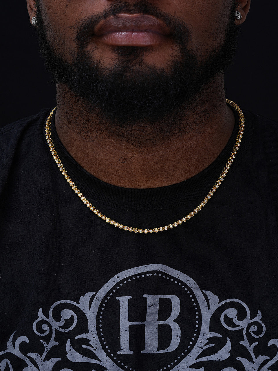 MOISSANITE Illusion Tennis Chain Necklace Iced Out - 14k Gold Vermeil 925 Silver - 3mm - 16"-28"