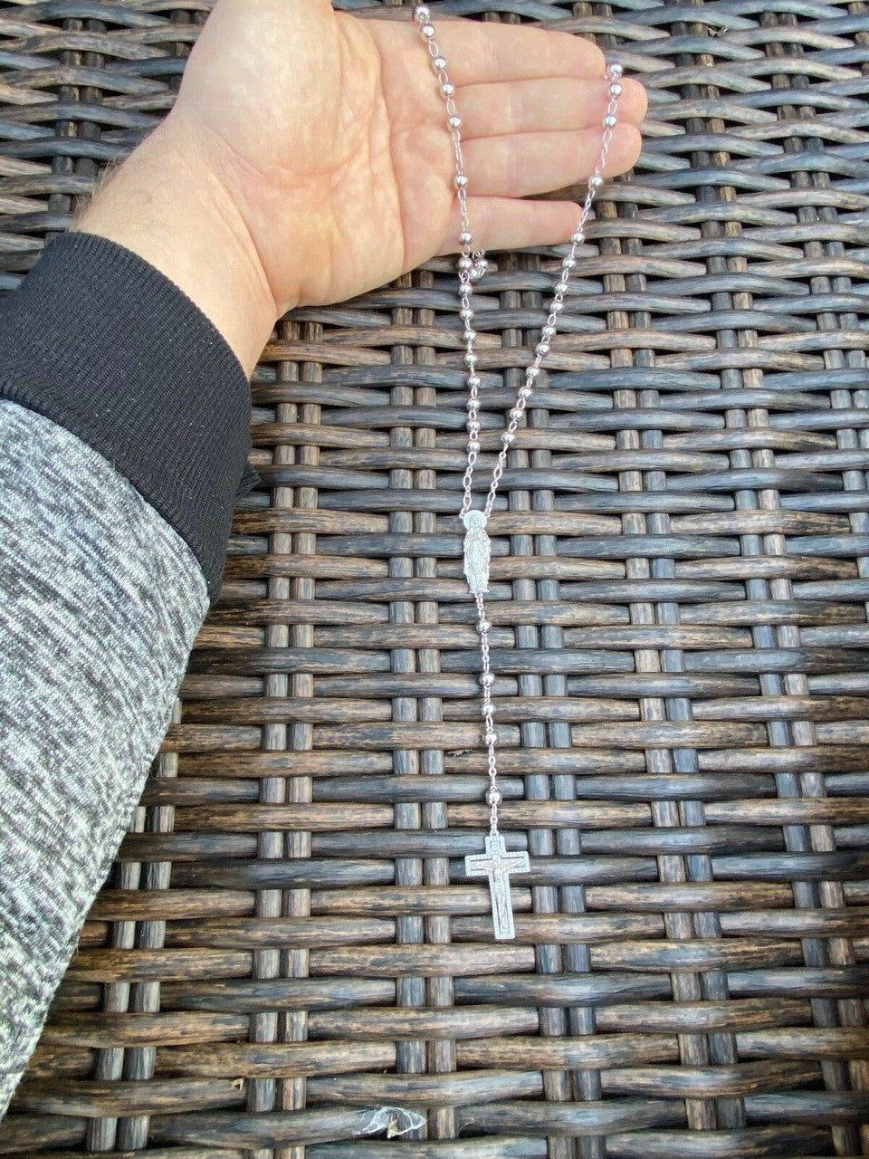 MOISSANITE Our Divine Mother Of Jesus Rosary Beads Necklace Iced Out - 925 Silver - 6mm - 30"