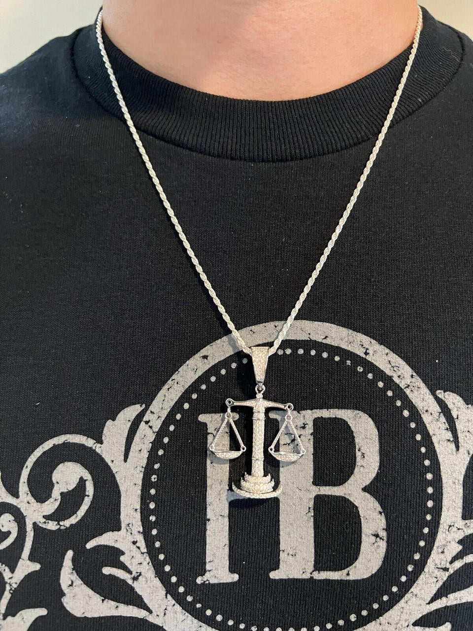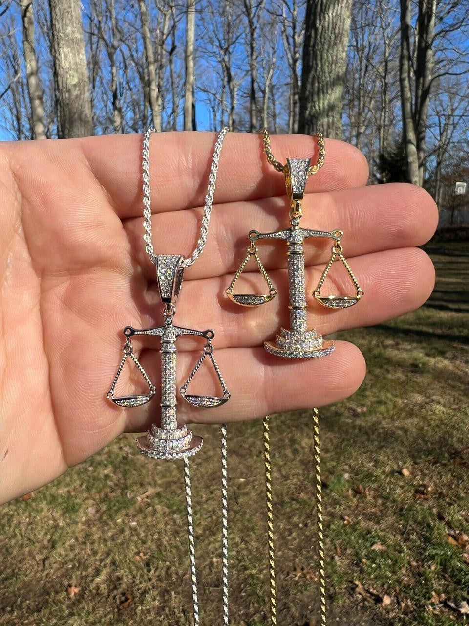 MOISSANITE Real Silver / Gold Libra Balanced Scale Necklace Pass Diamond Tester