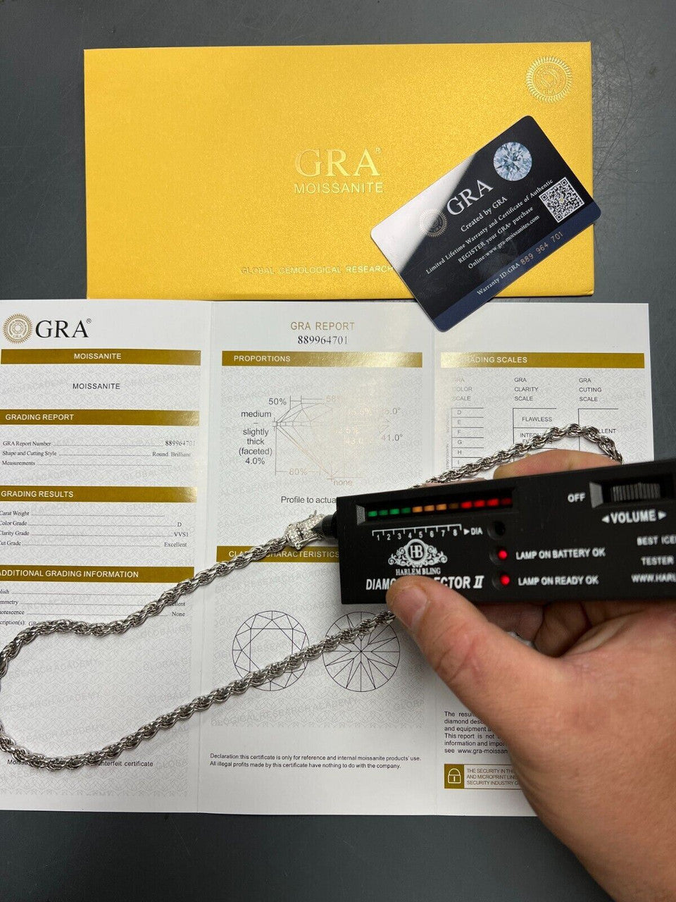 MOISSANITE Rope Chain Necklace Or Bracelet Iced Out Clasp - 925 Silver - 6mm - 7-30"