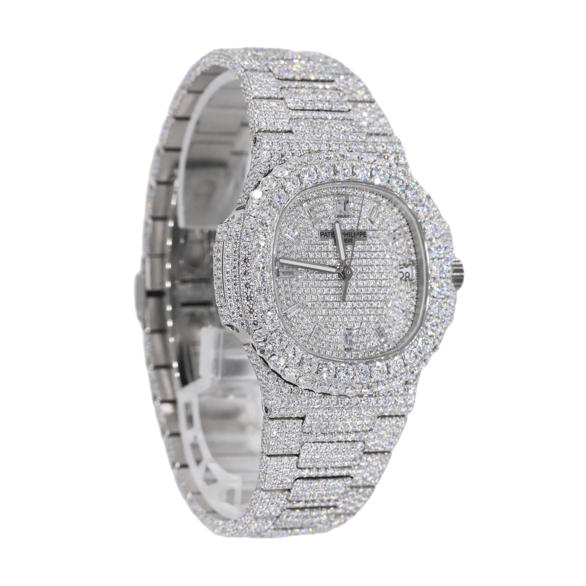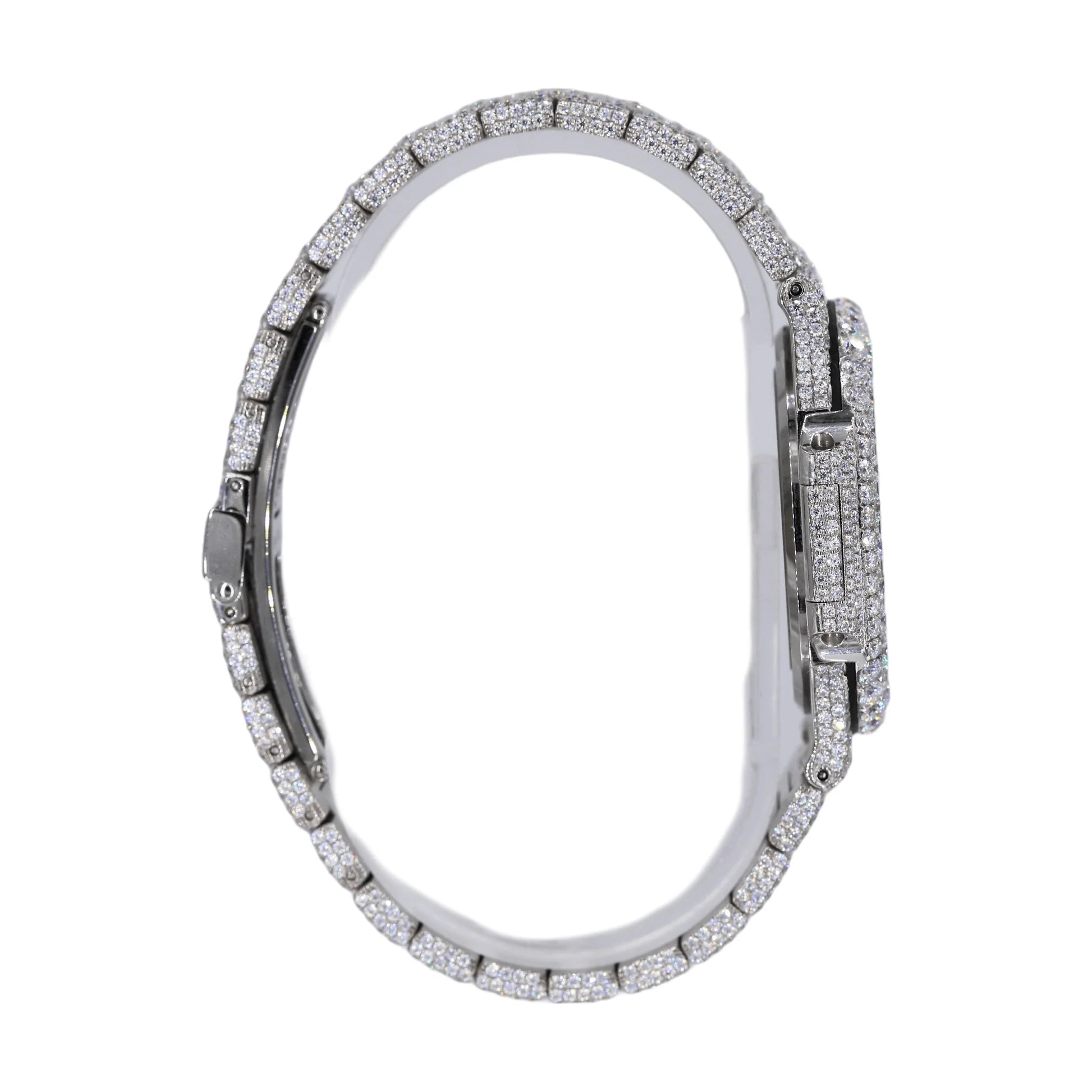 PT 41MM VVS Moissanite Diamond Two Row Stone Bezel Watch 22CT
