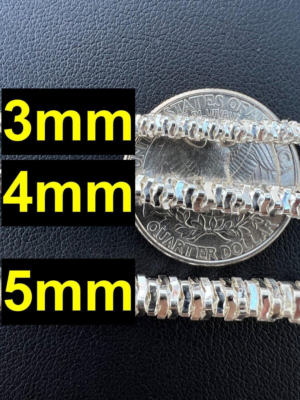 Round Sparkle Rock Chain Necklace - 925 Sterling Silver - 16"-30" - 3mm-5mm