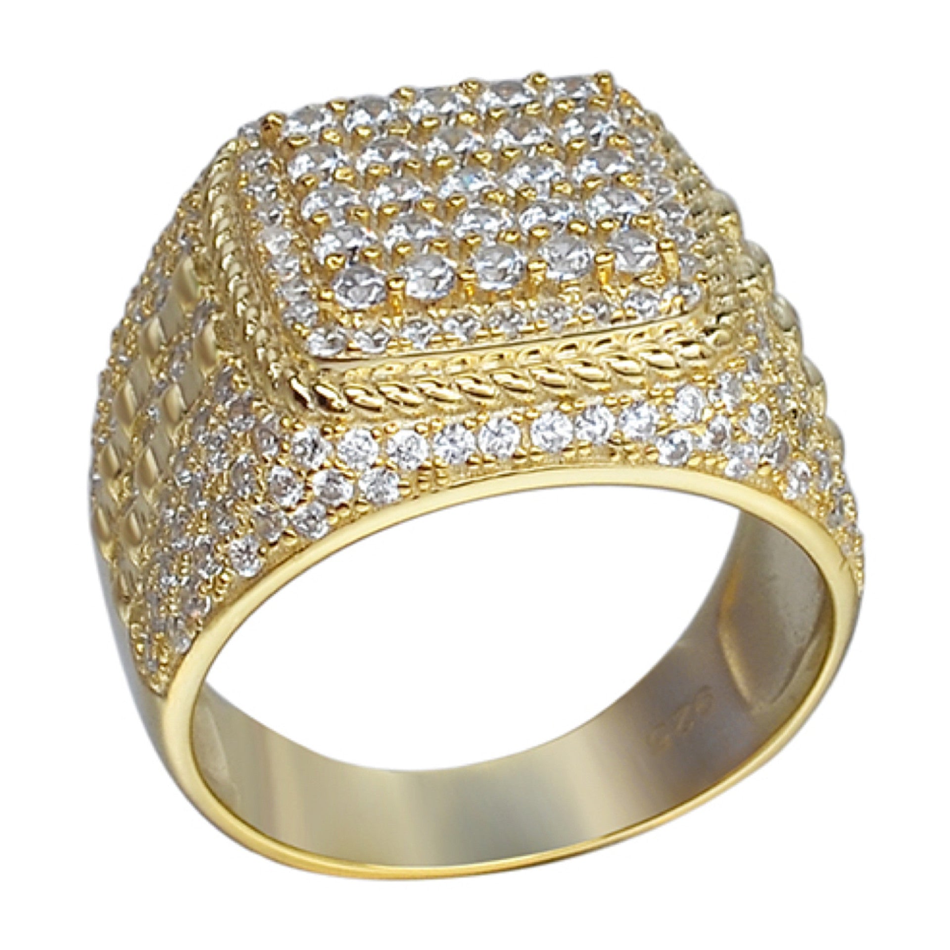 Sqaure Iced Out Chicago Ring - 14k Gold Vermeil 925 Silver - CZ Stones