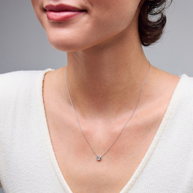 Sterling Silver 1/10 CT. T.W. Lab-Grown Diamond Round Solitaire Pendant - 16" + 2"