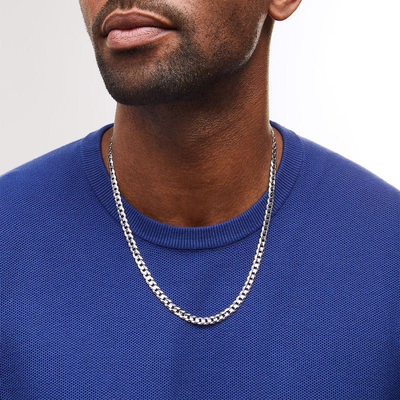 Sterling Silver Diamond-Cut Flat Curb Chain Made in Italy - 24"