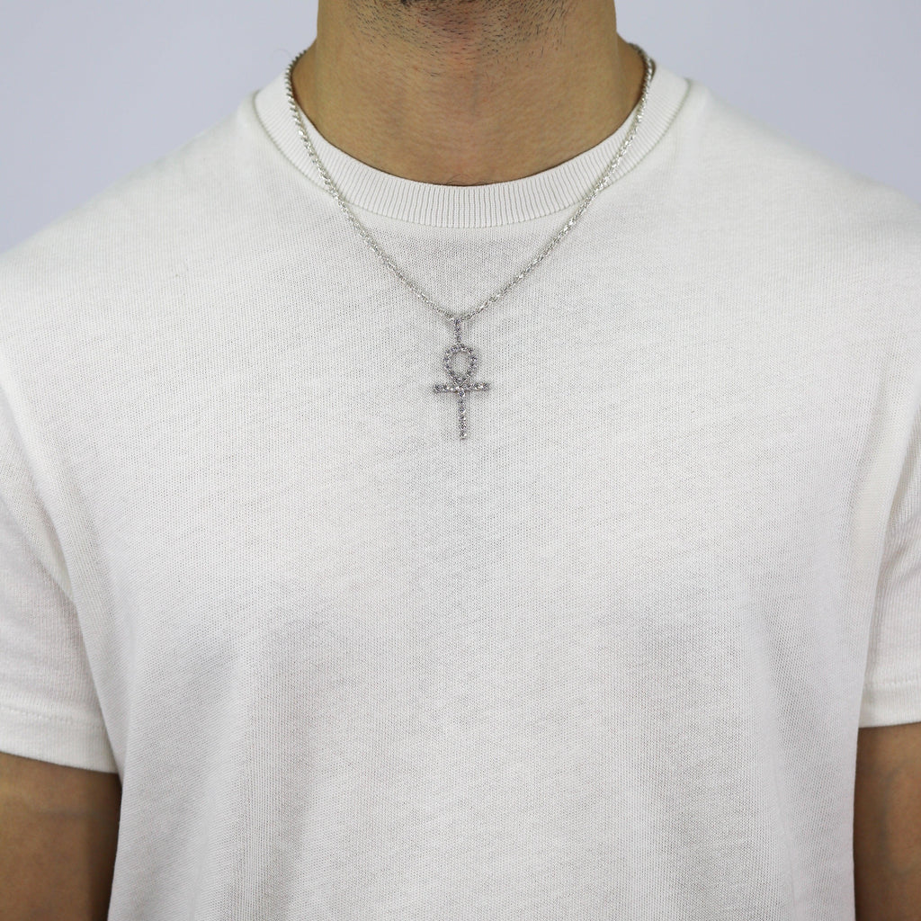 Tennis Ankh Cross VVS Moissanite Diamonds Pendant