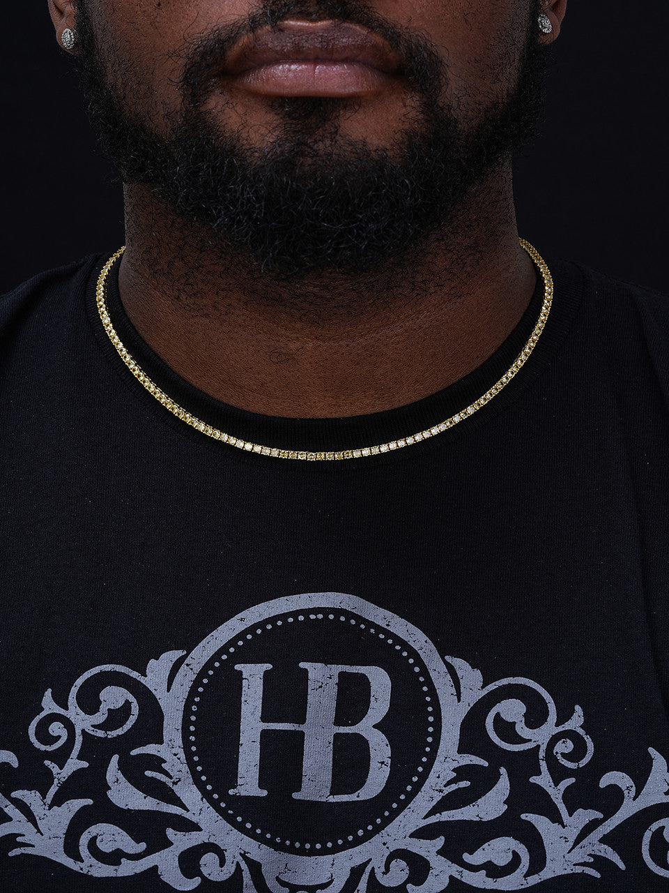 Tennis Chain Necklace Iced Out Canary Yellow CZ Stones - 14k Gold Vermeil 925 Silver - 3mm - 16"-28"