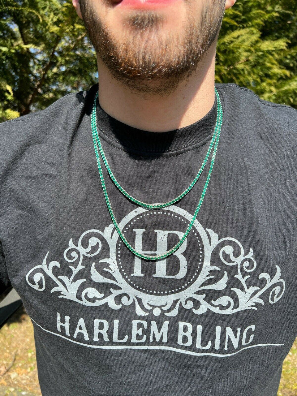 Tennis Chain Necklace Iced Out Green CZ Stones - 925 Silver - 3mm - 16"-28"